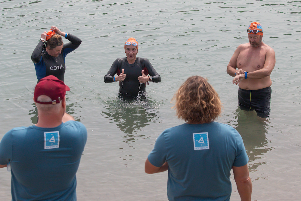 Starting at the foot of the upriver gorge from a really cool farmer’s riverside grass patch, you’ll navigate an island, watch jetties flow by, find the strongest part of the tidal push, head under a bridge, find your way through the canals, and land at the paddler’s club beach close to the small boat harbour. All the way down there will be accompanying paddlers, a safety boat, a ferry for feeds and relay change-over, and markers to show the way. It’s not a see-you-on-the-other-side swim, we’ll have your back all the way. But make no mistake, this is a swim of note.